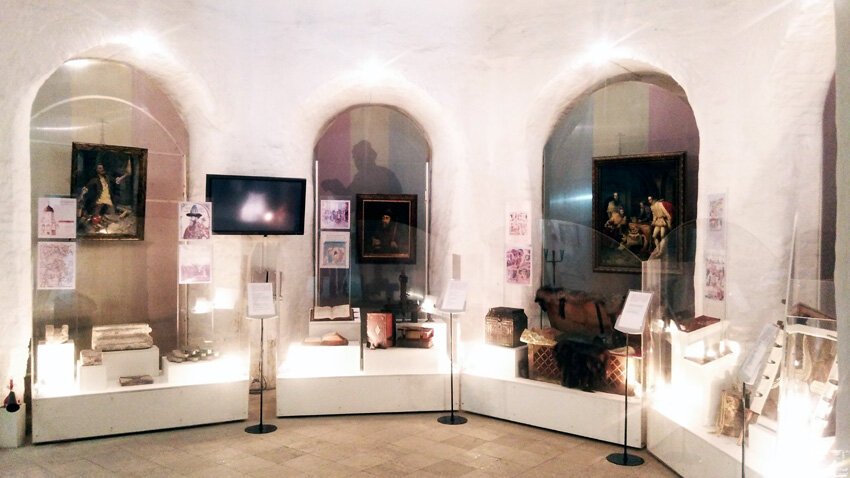 Когда мы вышли из этого зала, смотрительница посоветовала нам спуститься в другой подвал, дескать сейчас там начнется рассказ об экспозиции. Ну мы и пошли. Рассказ, конечно не рассказ, а записанный аудио файл, но, тем не менее, все интересно.