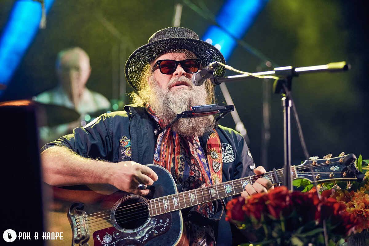 Отправной точкой явилось заглавное произведение с «Синего альбома», глубокомысленная «Железнодорожная вода». Удобно устроившись на стуле, Борис Борисович пел, аккомпанируя себе на акустической гитаре и губной гармонике. Продолжились умозрительные настроения треком «Плоскость» с того же сборника. Музыканты немного разбавили их мотивами бриза южных островов «Палёное виски и толчёный мел», умело используя сочетание мандолины, флейты и аккордеона, но тут же вернули всех к задумчивости творением «Стучаться в двери травы». Синглы разных лет дополняли друг друга, звуча предзакатными настроениями, под которые, укрывшись пледом на крыльце веранды и любуясь последними пурпурными отблесками, так славно размышляешь о преходящем. Но закат, уходя на запад, ведёт за собой прохладу сумрака, что мне послышалась в последующих мистических «DeathofKingArthur» и «Псалом 151».