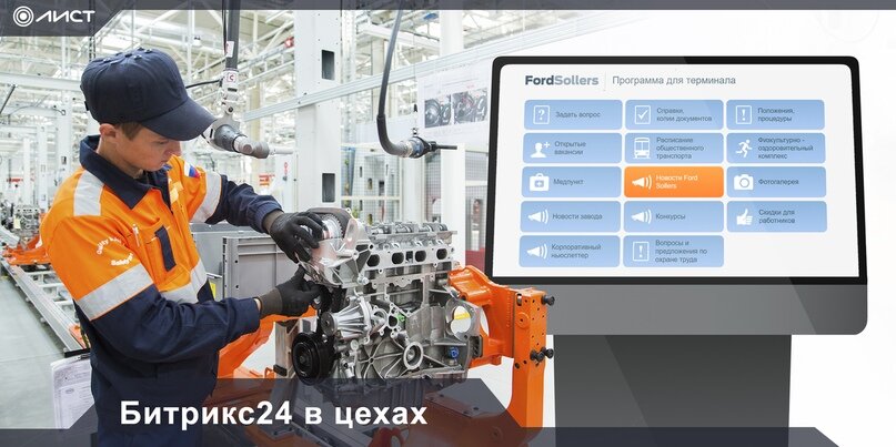 Мы заметили, что за последние несколько лет все больше компаний задумываются о едином информационном пространстве для своих сотрудников. Это контроль задач и проектов, звонки и видеоконференции, планирование совместных событий и база знаний, заказ справок и проведение опросов - список можно продолжать еще долго. Существенная проблема - отсутствие доступа некоторых сотрудников к рабочим компьютерам, да и смартфоны могут быть запрещены по политике безопасности. В первую очередь это относится к рабочим в цехах. Для заказа справок им приходится отстаивать очереди в отдел кадров, важные новости они часто узнают позже всех, а вопросы и предложения по охране труда остаются невысказанными. Столкнулись с этой проблемой и мы при внедрении Битрикс24 на Форд Соллерс Холдинг. Корпоративный портал был внедрен на четырех площадках: в Набережных Челнах, Елабуге, Всеволожске и в Москве, три из которых - производства. Решением стала разработка специальной версии портала для терминалов и инфокиосков: инт