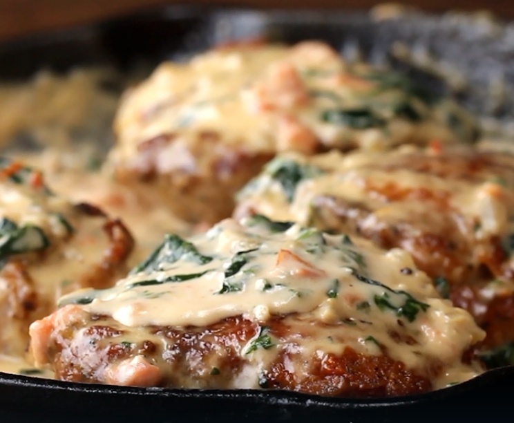 Очень вкусное блюдо из курицы. Готовлю как на праздники, так и к обычному ужину. Все в восторге. Ингредиенты на четыре порции: Приготовление: 1. Приправить курицу солью и перцем. 2. Нагрейте масло в сковороде на среднем огне. 3. Поместите курицу в сковороду и жарьте около 13 минут, чтобы ее кожа стала золотистой. Время от времени перемещайте курицу, чтобы она готовилась равномерно. Кожа должна быть твердой на ощупь. 4. Переверните курицу, затем готовьте еще 15 минут, пока курица не будет прожарена. Удалите бедра из кастрюли. 5. Добавьте чеснок и лук, помешивая, пока лук не станет прозрачным. Добавьте помидоры и шпинат, пока шпинат не завянет. 6. Добавьте сливки, соль и перец, доведите до кипения. 7. Добавьте сыр пармезан и петрушку, помешивая, пока соус не загустеет. 8. Положите курицу обратно на сковороду, выложите соус сверху курицы. 9. Наслаждайтесь! Понравился рецепт? Поставь лайк, если не сложно. И подписывайся для свежей порции рецептов.
