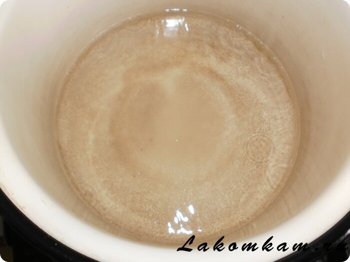 Приготовление шоколадного сорбета. Воду с сахаром ставим на огонь и варим до полного растворения кристалликов.