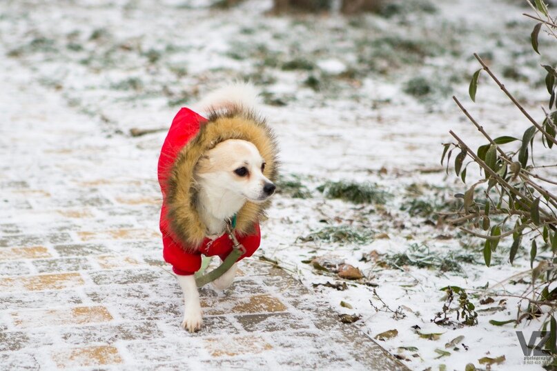 Не стоит очень коротко стричь шерсть собаки перед зимой – собаке будет холодно без природной шубки. Не секрет, что крупные питомцы с густой шерстью легче переносят похолодание, а вот декоративным песикам, а также короткошерстным собакам (боксеры, доберманы) теплая попонка или комбинезон не помешают. Комбинезон должен подходить по размеру. Если подбирать одежду в зоомагазине, туда лучше прийти вместе с собакой.