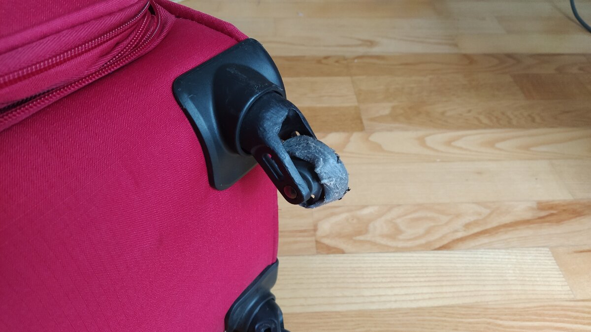 Одной из наиболее частых проблем, с которыми сталкиваются владельцы дорожных чемоданов на колёсах, является поломка этих самых колёс. Как правило, это является следствием перегрузки чемодана либо его неправильной транспортировки: через бордюры, ступеньки и так далее. Обычно в таких случаях многие обращаются в специализированные ремонтные мастерские. Однако делать это совсем не обязательно, так как починить колесо на чемодане можно самостоятельно в домашних условиях. Рассказываем, что для этого нужно сделать. 1. Берём чемодан со сломанным колёсиком. 2. Вооружившись отвёрткой, откручиваем держатель (крепление) колеса от корпуса чемодана. 3. При помощи плоскогубцев вынимаем ось и отсоединяем дефектное колесо от крепления. 4. Подыскиваем в домашнем хозяйстве замену изношенному колёсику. В нашем случае, например, идеально по диаметру и ширине подошло колёсико от детской машинки. В качестве замены можно также использовать подходящую по размеру хоккейную шайбу с просверленным посередине отвер