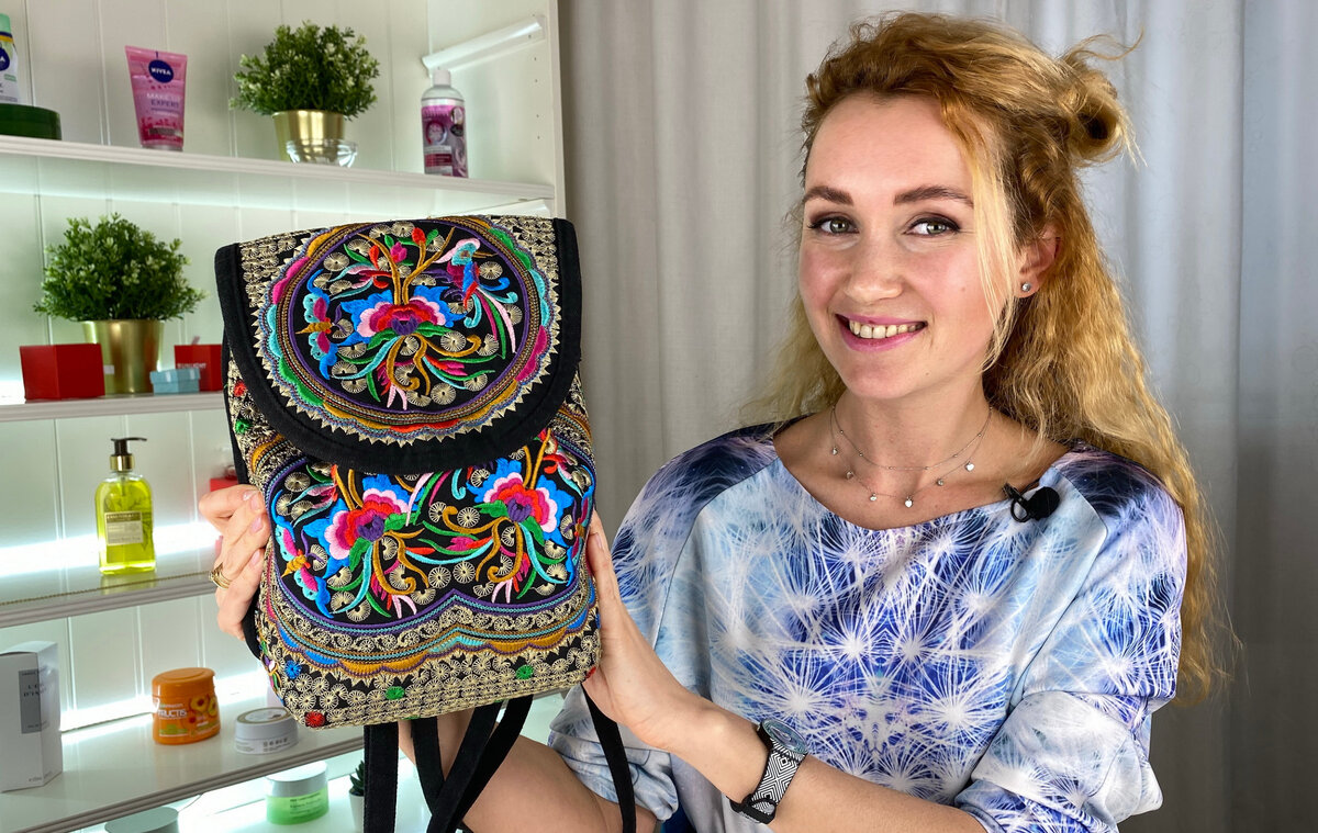 И не простом! А очень красивом дизайнерском рюкзаке с вышивкой, который я заказала для себя. И, который стал моим постоянным спутником при каждом выходе из дома.