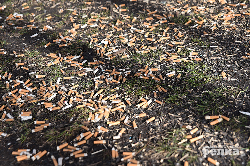 Фотофакт: из-за сигаретных окурков в гомельском дворе не растёт трава