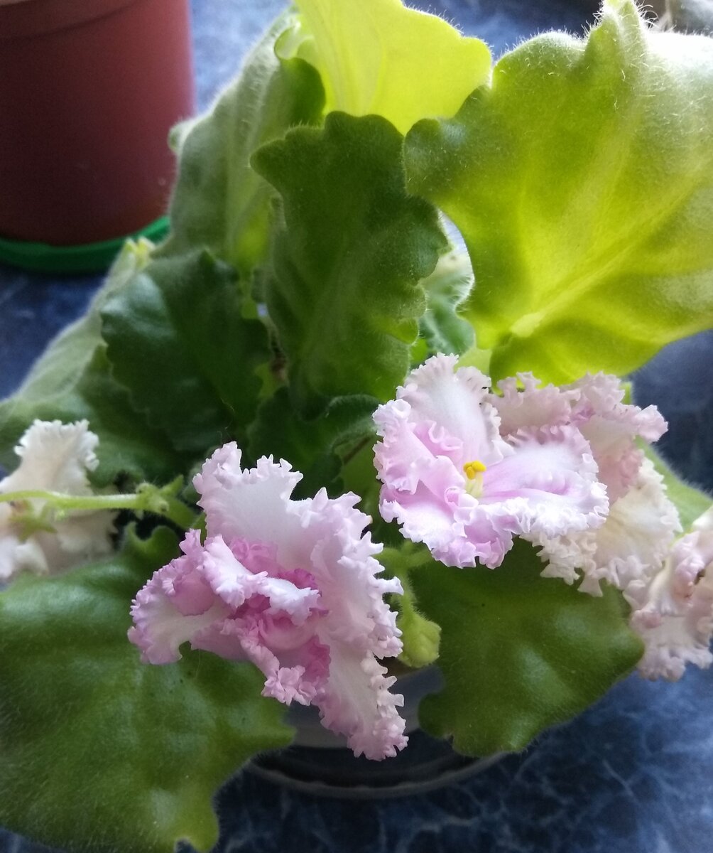 Фиалка в моем доме появилась случайно, я тогда даже не знала, как выглядят фиалки и какие разные они бывают. В офисе у мужа я увидела интересный цветок, причём на нем тогда не было ни одного цветоноса. С разрешения мужа я срезала один листик и посадила дома сразу в землю. После срезки нужно дать листику немного полежать, чтобы место среза подсохло. Листик можно сразу посадить в землю, у меня так лучше получается, корни появляются быстрее. Черенкам нужна тепличка, поэтому на стаканчик с листиком нужно надеть целлофановый пакет. Будьте готовы к тому, что новых листиков ждать придётся долго, а потом надо будет ждать, пока они подрастут и можно будет делить на отдельные цветы. От посадки до малышей, пройдёт примерно два месяца, потом ещё пару месяцев листики будут расти. Это если условия благоприятны для их роста. Если вы не готовы долго ждать, целое растение можно найти на Юле, цены разные, обычно фиалка стоит около двухсот рублей, но мне повезло купить сортовые по семьдесят. А
