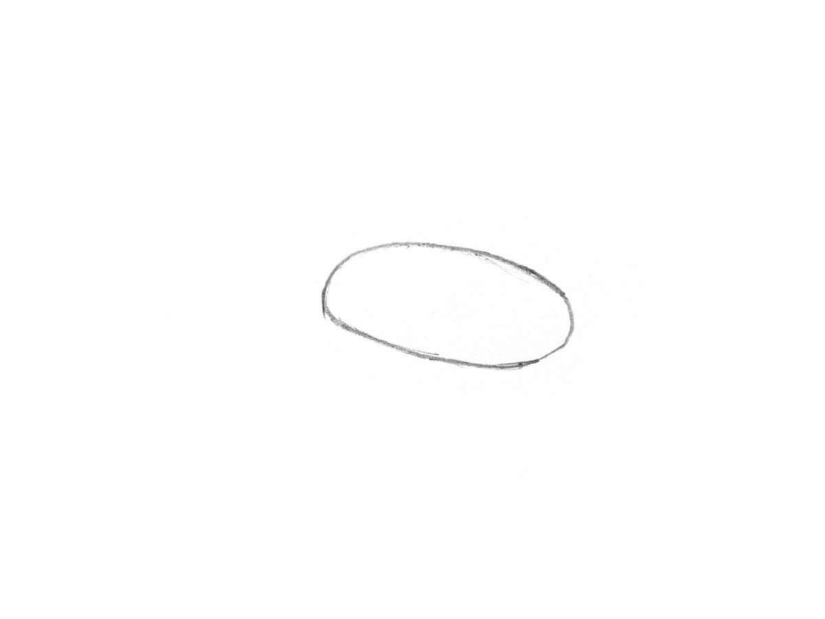 Основную часть туловища птицы довольно крупное, но наш орел будет находиться в положении полета. Поэтому нарисуем его в виде овала. Орел сейчас находится в полете. Поэтому голова будет опущена немного вниз. Рисуем ее с левой стороны от контура туловища. Также дорисуем с правого бока небольшой хвост