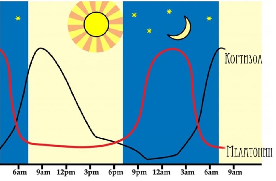 Во время ночного отдыха в темноте вырабатывается большое количество очень важных гормонов, влияющих на самочувствие, здоровье, защитные функции организма. Спать надо ложиться не позднее 12 часов ночи, а еще лучше в 22.00. Гормон мелатонин – регулятор биоритмов, натуральное снотворное, вырабатывается в темноте с 12 часов ночи до 4 утра. Под его воздействием приходят хорошие сновидения, сон длится дольше. Он нормализует давление, укрепляет иммунитет, регулирует гормональный фон. Соматотропин – гормон роста, тоже вырабатывается в темноте. Синтез начинается через 2 часа после засыпания. Отвечает за регенерацию тканей, ускоряет заживление ран, формирует костную ткань, омолаживает, тормозит процесс старения. Тестостерон – половой гормон, отвечающий за нормальное функционирование половой системы мужчин и женщин. Большая его часть вырабатывается именно во время сна ночью. По этой причине мужчинам всегда хочется секса по утрам. Если спать в темноте, показатель тестостерона повышается в разы.