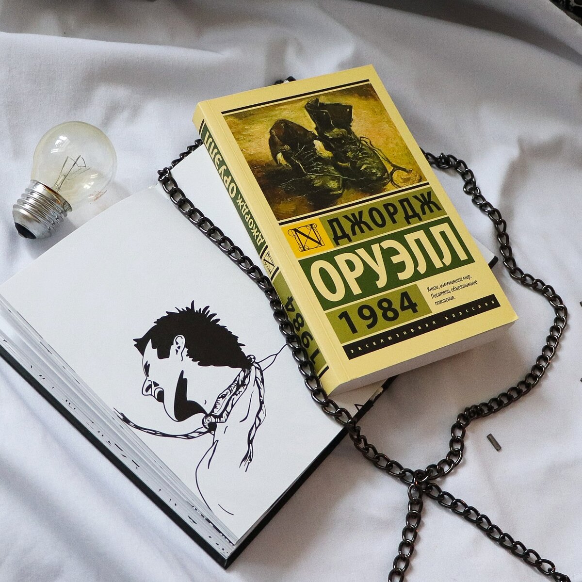 1984 - Джордж Оруэлл (1949) У меня (и, наверняка, не только у меня) есть дурная привычка загибать уголки страниц у книг, где мне понравилась какая-то мысль или слог. Да, книги это портит, зато спустя время я могу легко найти то самое важное место, и оно не будет утеряно. Так вот в этой книге таких страничек, увы, нет. Книга известная, обсуждаемая, и каждый уважающий себя книголюб должен её прочитать, но меня совсем не зацепила. Я восприняла её не как рассказ про "общество идеи", а как рассказ про человека без идеи. Что можно сказать про Уинстона? Он живет жизнью общества, не своей, он ничего не хочет и ничем не интересуется, делает то, что должен делать, иногда ворчит. Какие-то задумки у него возникают, но он тут же находит причины, чтобы от них оказаться, перекладывая всю ответственность на строй общества. Показанный в книге фрагмент его жизни наполнен страхом быть наказанным за мысли, отличные от лозунгов партии. Мыслепреступление - это гениально! Ведь если человек зациклен на идее