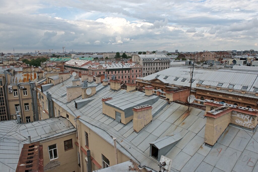 Ну, что, поднимемся на крышу? Только, пожалуйста, потише при подъёме на шестой этаж. Не тревожьте питерскую богему, обосновавшуюся в этом доме.