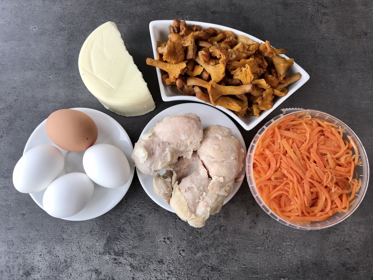 Пару недель назад готовила вкусный салатик "Лисья шубка" с курицей и лисичками, сразу скажу, его не обязательно готовить с лисичками, подойдут любые грибы, я как-то делала с маринованными шампиньонами, было тоже очень вкусно, но на этот раз именно с лисичками.