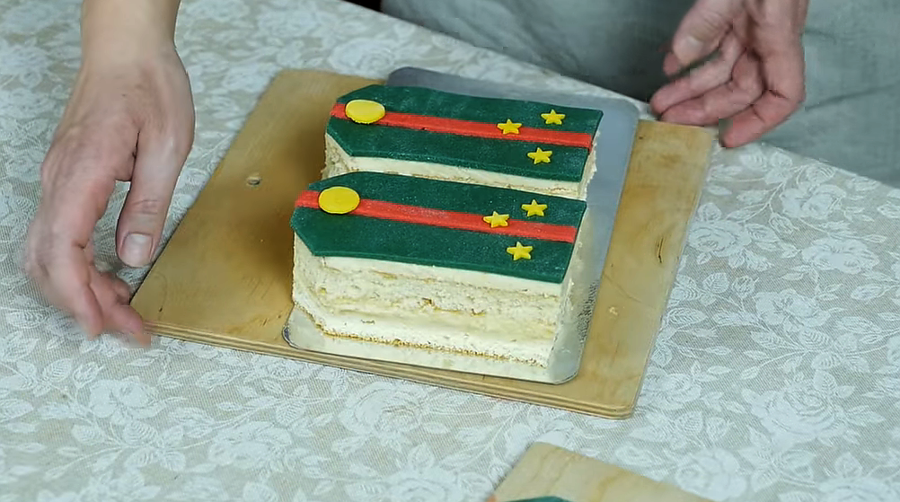 На 23 февраля испеку пирожные «Погоны» на «золотистых» коржах с оформлением из самодельной мастики