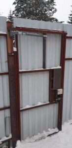 - Уличные калитки. Доводчик пневматический, мягко закрывает калитку без хлопка. Но при этом не дает ей открываться под ветровой нагрузкой.