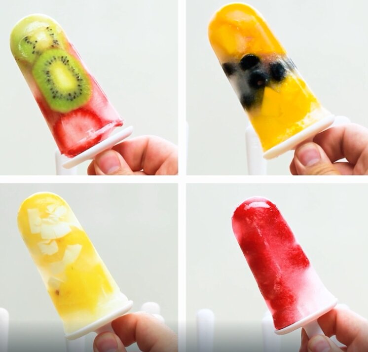 Поделюсь очень простым рецептом фруктового мороженого. Сделать сможет каждый. Для приготовления нам понадобится: Ингредиенты на 6 порций: Способ приготовления: 1. Нарежьте киви и клубнику тонкими ломтиками. Удалите кожу киви и выбросите клубничные верхушки. 2. Заполните формочки фруктами. (продаются в практически в любых супермаркетах) 3. Долейте воды. 4. Положите в морозилку не менее чем на 5 часов. Возьмите замороженные фруктовое мороженое из ледяных форм и наслаждайтесь! Подобрал еще 3 сочетания получается очень вкусно: 1) Ананасово-кокосовое. Ингредиенты на 6 порций: 2) Малиново-лимонное. Ингредиенты на 6 порций: 3) Черника и манго. Ингредиенты на 6 порций: