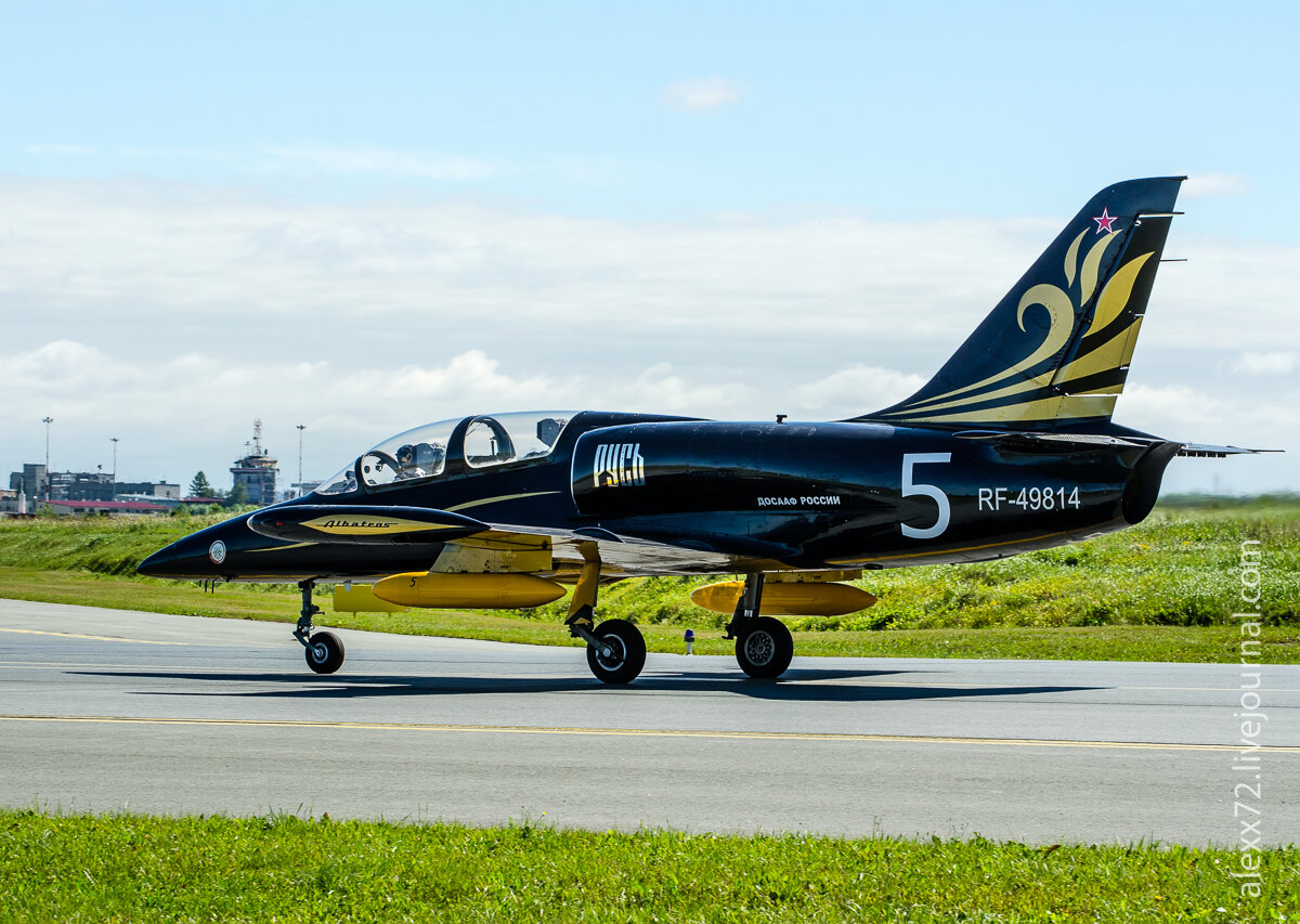 Думаю ни для кого не секрет , но в Тюмени почему то не принято приглашать на праздники пилотажные группы , ни на день города или области , праздник Победы ... Поэтому если хочется увидеть фигуры высшего пилотажа в исполнении воздушных асов на реактивных самолетах то вам нужно ехать туда где власти не скупятся на красивейшее и запоминающееся зрелище ! В Тюмени же каждый год приглашают каких то малоизвестных и никому не нужных певцов , выстреливают дорогущий салют... А увидеть в Тюмени пилотажную группу посчастливилось по причине их технической посадки в Рощино для дозаправки и отдыха пилотов. Пилотажная группа "Русь" держала путь в Новосибирск , там на аэродроме Мочище проходило авиашоу и гвоздём программы были конечно же Русь! Спасибо администрации Тюменского аэропорта за приглашение на перрон ! А пилотажной группе за то что разрешили походить вокруг их самолетов!