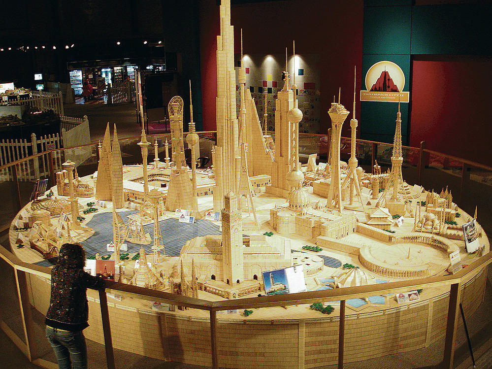 Шесть миллионов зубочисток и 170 литров клея, а еще много упорства и, конечно же, талант – это все, что потребовалось художнику Стэну Мунро (Stan Munro) для создания целого города, где все здания, достопримечательности и даже транспортные средства состоят полностью из маленьких зубочисток. Стэн Мунро построил свой первый город из зубочисток в 2003 году. С этого начался его путь к успеху, он бросил работу и посвятил себя любимому делу. В итоге хобби превратилось в доходный бизнес. Стэн Монро - бывший телеведущий, который решил построить самые известные в мире достопримечательности из зубочисток, и как он признается, это строительство сало самым сложным и трудоемким из всех, которые он когда- либо предпринимал.