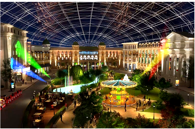 Архитектурная изюминка парка — стеклянные купола, возведенные над всей территорией городского променада.