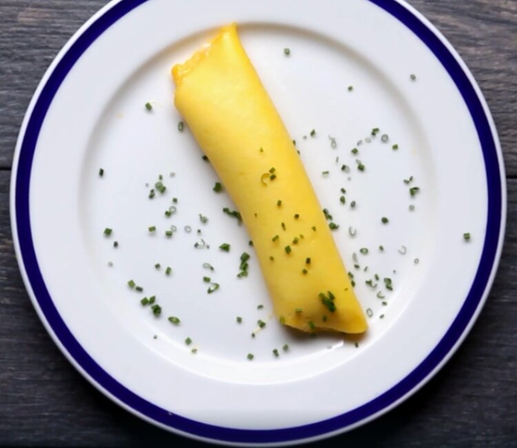 Рецепт французкого омлета. Удиви своих близких, приготовив им это лакомство. Ингредиенты для одной порции: Способ приготовления: 1. Яйца взбить с солью до тех пор, пока белки и желтки не будут полностью объединены без пятен яичного белка. 2. На среднем огне растопить сливочное масло в сковороде, затем влить яйца. 3. Используя резиновый шпатель, постоянно очищайте дно сковороды, встряхивая сковороду круговыми движениями, чтобы яйца варились медленно, образуя только небольшие сгустки, около 1-2 минут. 4. Как только вы начнете видеть дно сковороды более чем на секунду после соскабливания, образуйте яйца в круглую круглую форму. Готовьте, пока края не затвердеют, затем наклоните сковороду и аккуратно накатайте омлет на себя. 5. Выложите на тарелку, затем посыпьте луком. 6. Подавать немедленно. 7. Наслаждайтесь!