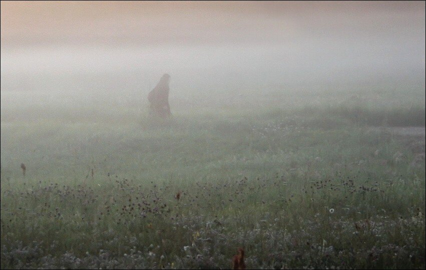 Начало здесь... Так прошел год. Как то на хуторе появилась странница, ее одинокую темную фигуру было видно из далека, она хоть и опиралась на палку, но шла уверенно, не замечая никого вокруг, сложно сказать какого возраста, то ли старуха, то ли нет, лицо изможденное и седые волосы выбивались из-под платка. Марысе показалось знакомым лицо странницы, но от куда никак не приходило в голову, тем временем та остановилась у места, где когда то стояла хата, в которой жила семья Олеси, заново там никто не отстроился и время скрыло следы пожара высоким бурьяном. Марыся подошла ближе к женщине, и услышала тихое, тонким голосом нараспев как в церкви.... Кто из нас может жить при огне пожирающем? Кто из нас может жить при вечном пламени?» (Исаия 33:14) Из глаз женщины потоком текли слезы. Марыся взяла ее за руку и привела к себе в хату, усадила за стол, покормить. При виде картошки женщину аж затрясло, она ела руками запихивая в рот картошку целиком. Женщина посмотрела долгим взглядом, она каза