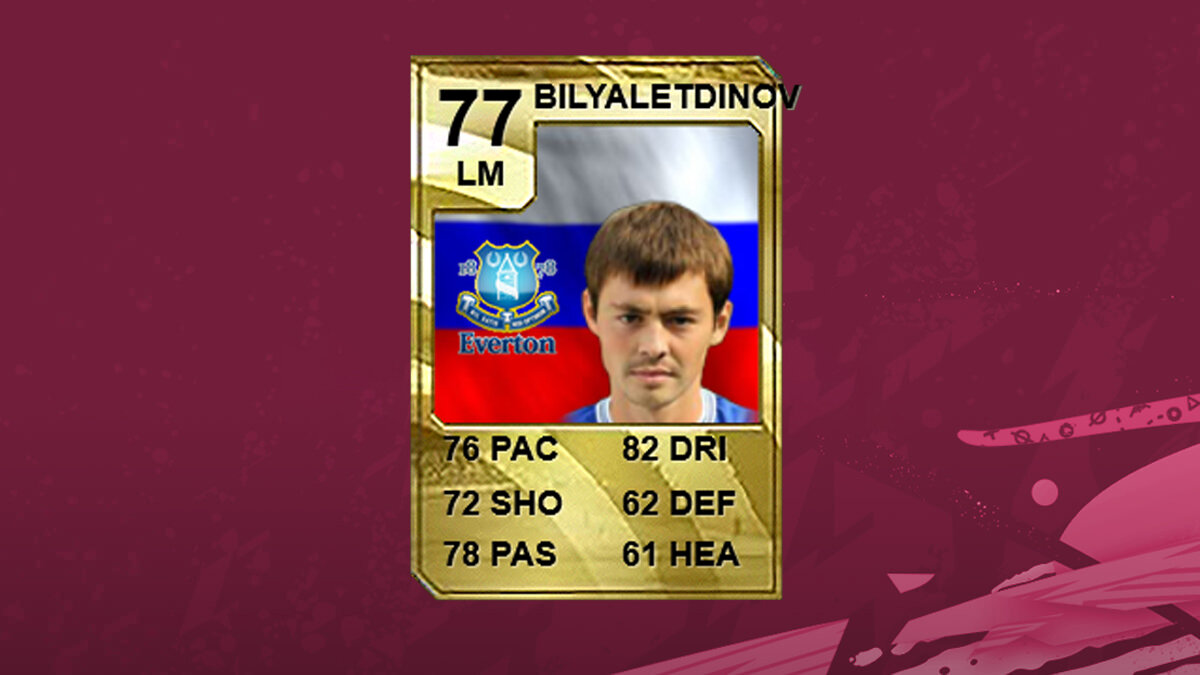Сегодня мы решили немного отойти от темы FIFA и сделать подборку из 6 русских футболистов, которые забивали грандам европейского футбола. Но всё же немного FIFA здесь будет: мы будем брать карточки футболистов из того сезона, в котором они забивали рассматриваемые нами голы. Динияр Билялетдинов («Эвертон») - гол в ворота «Манчестер Юнайтед», FIFA 2010 В 2009-ом Билелятдинов переехал в Ливерпуль. Для футболиста время в «Эвертоне» получилось неоднозначным, ведь он чередовал хорошую игру с плохой и вскоре уехал на родину. Рассматриваемый нами гол Динияр забил в матче 27-го тура чемпионата Англии в ворота «Манчестер Юнайтед». Игрок точным ударом в ближний угол из-за пределов штрафной смог поразить ворота Ван Дер Сара. Павел Погребняк («Рединг») - гол в ворота «Челси», FIFA 2013 Погребняк в 2009-ом тоже поехать покорять Европу, но только он начал с Германии, а потом уже аж к 2012 году перешёл в «Рединг». В этом клубе он провёл наибольшее количество матчей в Европе (94) и смог забить 24 го