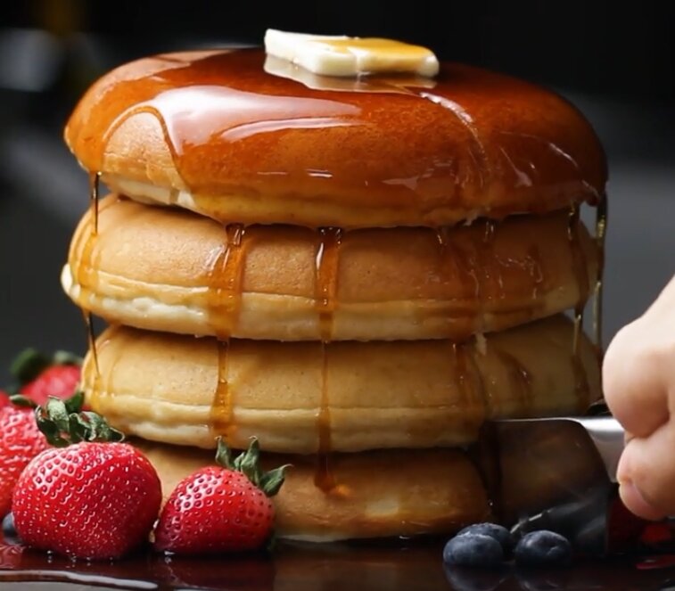 Воздушные панкейки. Дети просто обожают это лакомство. Ингредиенты на четыре штучки: Способ приготовления: 1. Взбейте муку и разрыхлитель в большой миске. 2. В отдельную миску добавьте масло, молоко и яичные желтки, чтобы смешать. 3. В третьей миске используйте ручной миксер, чтобы взбить яичные белки до нужной консистенции. 4. Вылейте смесь молока в смесь муки и размешайте резиновым шпателем, пока они не превратятся в однородную массу. Добавьте взбитые яичные белки и аккуратно перемешайте. 5. Разогрейте антипригарную сковороду на медленном огне. Вылейте 1 ½ чашки жидкого теста в сковороду, выровняйте вершину, затем накройте крышкой. Жарьте, пока золотисто-коричневого цвета, около 20 минут. Переложить блин на тарелку и повторите, приготовив еще 3 блина из оставшегося теста. 6. Подавать с кленовым сиропом. 7. Наслаждайтесь!