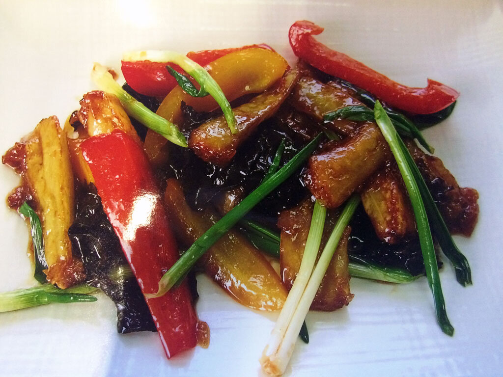 2 баклажана диаметром 7-8 см. 200-300 г.свиной вырезки 1 луковица 2-3 дольки чеснока 1/2ложки молотого имбиря Соль,красный молотый перец,вэйсу-по вкусу 2 яйца Крахмал,панировочные сухари Растительное масло для жарения. Приготовления: Баклажаны моем,нарезаем кружочками толщиной около 2 см,затем каждый кружочек надрезаем вдоль пополам,не доходя до 1 края примерно 1 см. Выкладываем в миску,пересыпая солью,слегка придавливаем перевернутой тарелкой и оставляем на 30 минут.Затем промываем и даем обсохнуть на бумажном полотенце. Пока подготавливаются баклажаны сделаем начинку.Мясо пропускаем через мясорубку вместе с луковицей и чесноком.Добавляем имбирь,соль,красный перец и вэйсу по вкусу,перемешиваем.Оставляем в холодильнике на 30 минут. Бвклажанные "кармашки "начиняем фаршем(примерно столовой ложкой), слегка придавливаем кружочки каждрго"кармашка"друг к другу. Панируем в крахмале,обмакиваем во взбитые яйца,затем хорошенько панируем в сухарях.Выкладываем на противень,застеленный бумаго