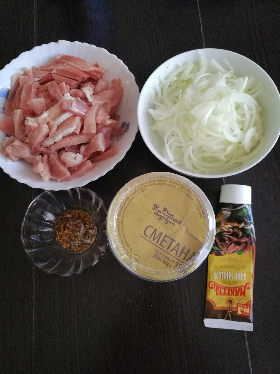 Ингредиенты Для приготовления мяса, тушеного со сметаной, понадобится: 500 г говядины (или свинины); 2 головки репчатого лука; 150 г жирной сметаны; 1 ст. л. острой горчицы; 1 ст. л муки; 1 стакан горячей воды (или бульона); соль, черный молотый перец, молотая паприка - по вкусу; растительное масло. В глубокой сковороде разогреть растительное масло и обжарить мясо до золотистой корочки. Обжарить немного все вместе. Всыпать муку, быстро перемешать, влить 1 стакан горячей воды, уменьшить огонь и тушить мясо под крышкой 40-50 минут. Затем посолить и приправить специями.Смешать сметану с горчицей, добавить к мясу. Все перемешать и тушить на медленном огне до готовности.