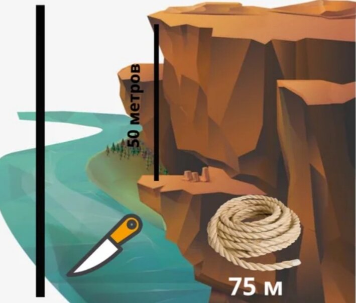 Читайте также: - Попробуйте расследовать преступление! Используя свою логику - Школьные примеры, которые только на первый взгляд кажутся лёгкими. Но это не так. - Побудь детективом и отгадай загадку на логику. Всем привет, уважаемые читатели нашего канала! На просторах мирового интернета не так давно появилась новая загадка, которая подвергается бурному обсуждению и дискуссиям, и в целом благодаря тому, что ответ на неё имеется далеко не во всех интернет-источниках, в которых она появляется. Но в отличии от других источников, ответ на эту загадку у нас будет. Но не спешите только, попробуйте её разгадать сами. Итак начнем!🙂 Загадка заключается в следующем: есть некоторая гора, и высота её 100 метров. На её вершине стоит человек, которому нужно спуститься вниз. У этого человека есть острый кинжал, и верёвка. Длина веревки - 75 метров. Ровно посередине горы есть небольшой выступ, на котором может уместиться и спокойно стоять один человек. На самом верху, где сейчас находится челове