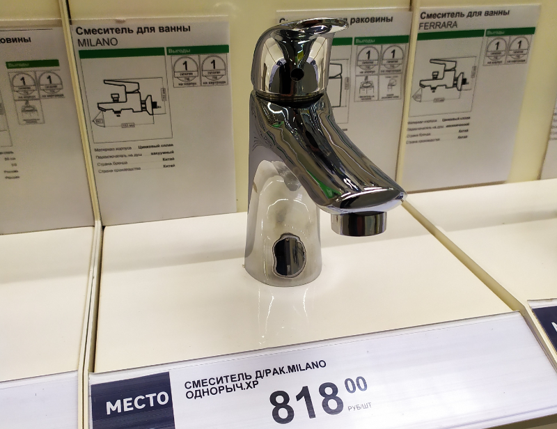 Каждый делает ремонт по своим возможностям.Кто-то вкладывает не малые суммы наличности и огромного труда,чтобы его ванная комната блестела и сияла,как у Саудовского шейха.А есть люди у которых финансовые возможности ограничены,но хочется чего-то нового и обновленного,но денег мало,а возможности просто дыры в кармане,по сравнению с другими.А если еще и жена пилит,ну когда ты заменишь ванну или раковину на новую,то приходится брать себя в руки и направляться в "Леруа Мерлен".И в этом обзоре я покажу вам,что можно купить из смесителей за 300-1000 рублей в этом магазине,если ваши финансы не так стабильны,как вам хотелось. Смеситель для раковины хромированный по цене 818 рублей. Дачный вариант смесителя для раковины за 367 рублей не рассчитан на высокое давление.В квартире категорически не применять. Низкий хромированный смеситель за 353 рубля. А этот смеситель с длинным носиком тоже хромированный,для раковины.Цена 791 рубль. Тоже дачный вариант на раковину не предназначен для сетевого давл