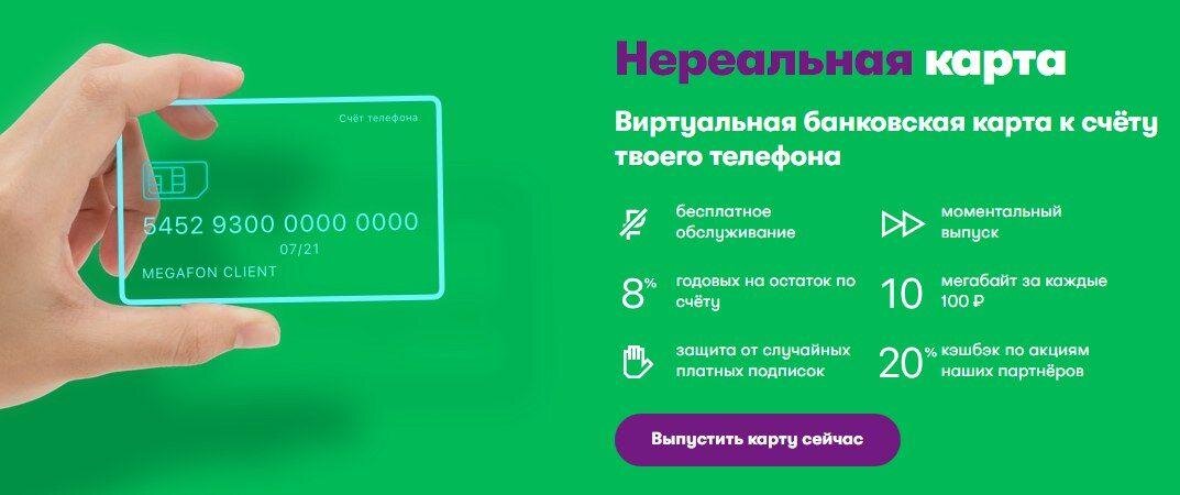 Мегафон Банк выпустил самую выгодную дебетовую карту с большим кэшбеком. Получаем 1,5% кэшбека на любые покупки и 20% кэшбека на акции партнеров (здесь очень много акций и скидок известных брендов). И дают халявный интернет: 10мб за каждые 100₽ с любых покупок по карте. Обслуживание абсолютно бесплатное. Также есть олнайн-банк, который удобен на 200%. И карту можно выпустить в двух видах: виртуальную или пластиковую. Выбирай ту, которая удобнее. (https://fas.st/Y2aoB) Бесплатный интернет, кэшбек и бесплатное обслуживание. Халява становится еще халявнее! Оформляем и забираем!