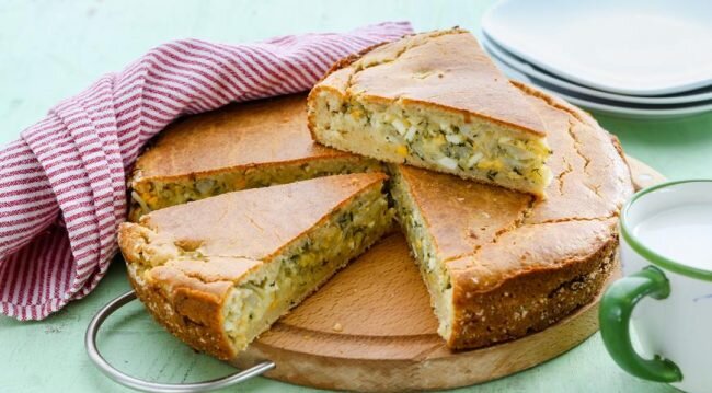 Вкусный и сытный заливной пирог со щавелем