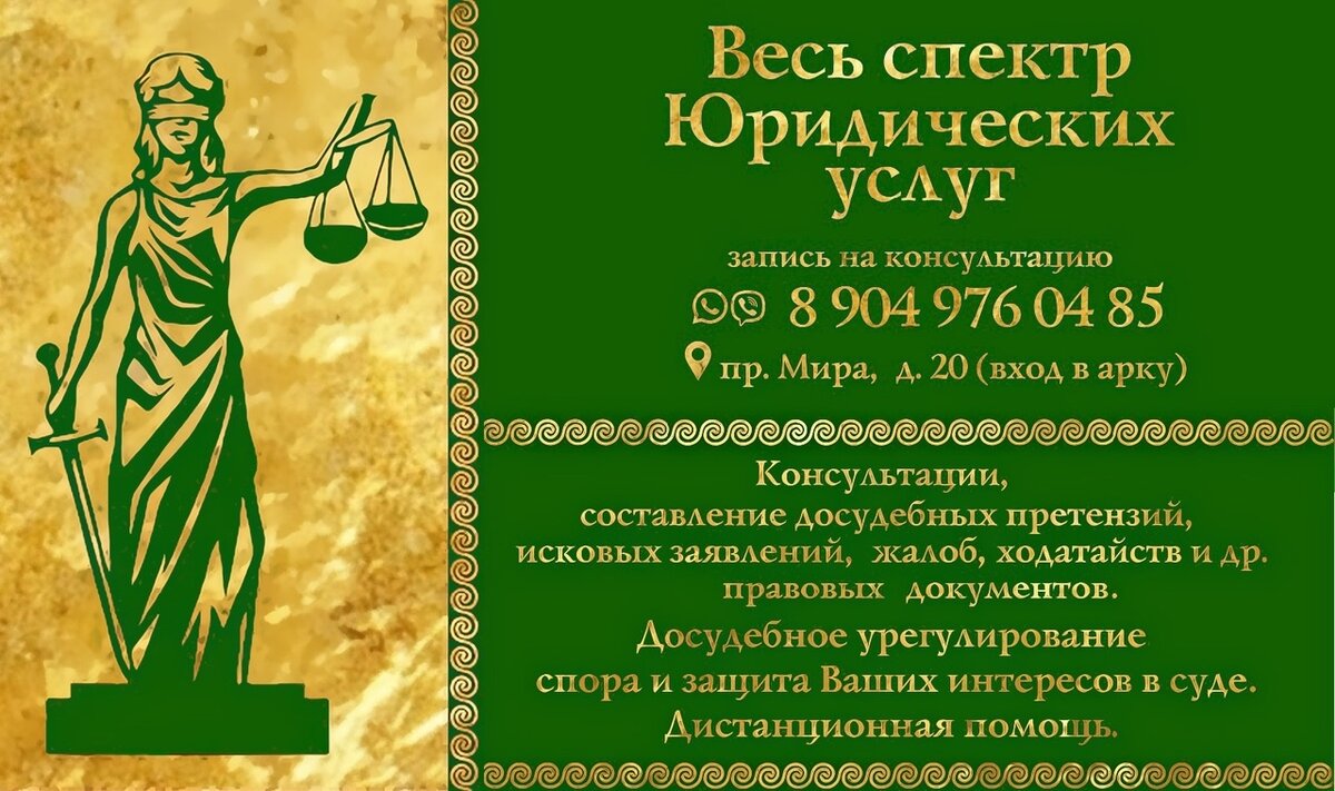 Доброго вечера, меня зовут Анастасия Олеговна. Работаю юристом, а также преподавателем юридических дисциплин в городе Златоусте. Специализируюсь в гражданско-правовых правоотношениях. На своей странице ВК публикую различные статьи, прилагаю грамотно составленные правовые документы. Принимаю клиентов у себя в офисе по адресу пр. Мира, д. 20, а также помогаю людям дистанционно (в электронном варианте клиенты скидывают мне документы по делу, а я составляю необходимые юридические документы, по договорённости возможен выезд в другие города. Также работаю с зарубежными клиентами (наследственные дела, различные сделки у нотариуса). Опыт моей работы более 10 лет. Люблю свою работу и буду рада новым клиентам. Мои контакты в визитке выше. В следующей публикации буду описывать про досудебное урегулирование спора и правильное написание претензии. Моя страница ВК https://vk.com/anastasiaolegovnagoncharova