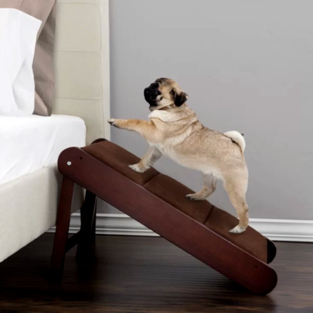 Движение по лестнице Этому приему питомца обучают одновременно с приучением его преодолевать различные препятствия. Возможные ошибки при обучении: Первоначальное обучение производится на пологих лестницах с широкими ступеньками. Обучение собаки двигаться по лестнице выполняется несколькими способами. Первый способ Дрессировщик берет собаку на короткий поводок, подходит к лестнице, дает команду «вперед», и, осторожно, вместе с собакой поднимается вверх, поощряя ее поглаживанием или лакомством. Спускаться с лестницы для собаки труднее, поэтому дрессировщик находится чуть сзади и следит, чтобы собака шла спокойно. еду. Второй способ основан на пищевой реакции собаки Обучение производится путем установления миски с едой на верхней ступени лестницы или путем раскладывания кусочков лакомства по всем ступенькам. Третий способ Собаке предварительно показывают ее игрушку или апортируемый предмет, затем заносят его наверх, и посылают собаку. Чтобы контролировать спокойное движение