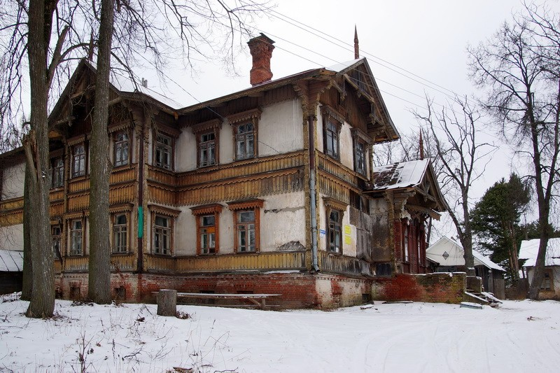 Язык у меня не поворачивается назвать усадьбу дачей по одной простой причине - построена она была рядом с производством Рябушинских. Понимаете, да? Вы бы тоже, наверняка, не захотели дачку рядом с успешной, активно работающей бумагопрядильной фабрикой (ныне Вышневолоцкий хлопчатобумажный комбинат). Но у купцов (они же - банкиры и известные общественные деятели того времени) была своя логика. Тем более, что производство был не маленькое (уступало по объемам производства в России только предприятиям Морозовых) и имело рядом целую инфраструктуру для рабочих: дома жилые, ясли, казармы, больницу, часовню, училище и ясли. Т.е. наличие усадьбы в такой близости меня не удивляет. А дачи - очень даже.