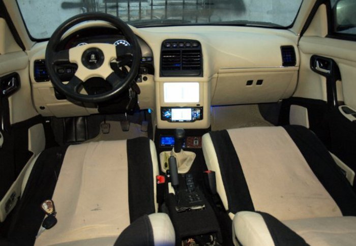 В этой статье мы решили собрать фото и видео подборку тюнинга салона ваз 2110. Десятка очень распространенная модель ваза. И увидеть ваз 2110 можно практически в любом месте. А, как известно, каждый автолюбитель, хочет, что бы его автомобиль был особенным и необычным. И поэтому любители тюнинга модернизируют и тюнингуют салон машины. Тюнинг салона ваз 2110 довольно не простая вещь. При грамотном тюнинговании салона десятки нужно заменить практически все детали, так как заводские настоящий хлам и для создания идеального тюнинга салона не подходят. В салоне ваз 2110 может тюнинговаться обшивка сидений. Их обтягивают кожей, шифоном, бархатом и другими материалами. Так же тюнингу подвергается приборная панель и бардачок, где можно разместить небольшой монитор или магнитолу. Тюнинг салона ваз 2110 можно увидеть наглядно на видео и фото. На этом фото, тюнинг салона ваз 2110 изображён отличный тюнинг. Автор по максимуму применил фантазию и выдал настоящий эксклюзив. Красным бархатом обтянул п