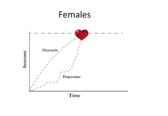 Женщины влюбляются, когда у них увеличивается уровень допамина и окситоцина.