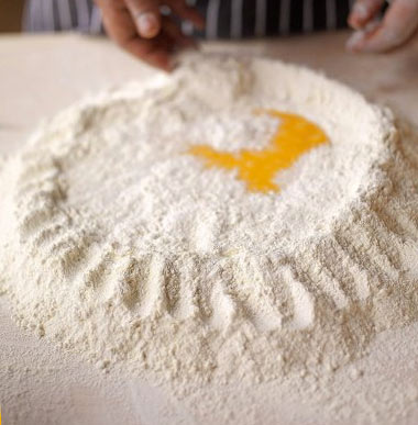 Ингредиенты Приготовление теста для макаронных изделий – это королевская затея! Когда Вы самостоятельно приготовите качественное тесто для дальнейшего его превращения в макаронные изделия: пасту, макароны, вермишель или лапшу, Вы ощутите гордость и удовольствие. Существует огромное разнообразие сортов и формы макаронных изделий. Приготовив тесто, вы сможете выбирать форму изделий по своему вкусу. Существует бесчисленное множество вариантов соусов и разнообразие сочетаний макаронных изделий с различными соусами. Вы сможете подобрать свой собственный вариант! 1. Замесите тесто Муку и манную крупу высыпьте в большую миску и сделайте углубление в середине. Добавьте яичные желтки , масло и 4 столовые ложки холодной воды в лунку. Взбейте вилкой, постепенно вымешивая однородную массу. Когда масса загустеет, возьмите тесто и руками оформите из него шар. Оставьте, завернув в марлю, на 30 минут. Затем разделите тесто на четыре части. Вам понадобится каждую часть отдельно пропускать через м