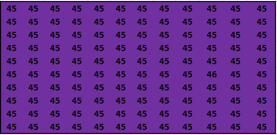Всем доброго времени суток, дорогие читатели! Если вы сюда зашли, то скорее всего хотите проверить свою внимательность. Специально для этого я приготовил для Вас простые и увлекательные картинки с числами, задания по которым может выполнить даже ребенок. Суть в том, что на картинках есть ряды одинаковых чисел, среди множества которых есть лишь одно число, отличающееся от остальных. Ваша задаче его найти как можно быстрее. Для того, чтобы добавить соревновательного элемента, можете взять любой секундомер и засечь время от начало прохождения первой картинки до окончания поиска нужного числа на последней. Полученное время напишите в комментариях максимально честно. А также, если вы смогли найти все числа, не важно за какое время, главное что смогли найти, то поставьте этой статье лайк. Это привлечет еще больше участников в игру, и мы сможет оценить сколько же у нас максимально внимательных людей. 1) Начнем с легкого - найдите на картинке число "46" Справились? Отлично, теп