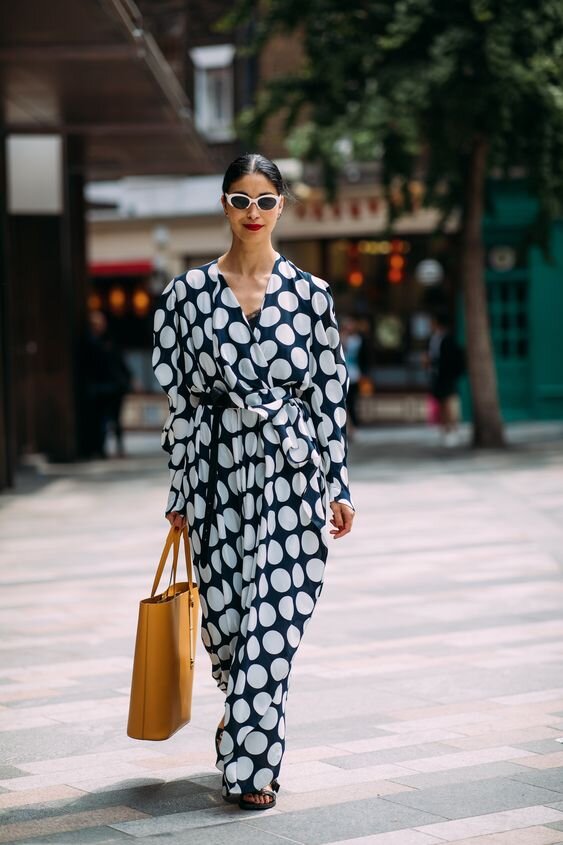 Перед тем, как писать про «весенние тренды» я стараюсь отсмотреть лукбуки и показы, относящиеся уже к сезону осень/зима 2020-2021, поэтому все приемы можно смело использовать в течение года (а может и больше). Некоторые идеи уже давно с нами: вот в огромных просторных платьях, вроде бы, нет ничего нового для просвещенного читателя. Но раз уж они снова на всех подиумах мира — почему бы и нам не вспомнить. Такие платье шикарный вариант на лето, когда жарко. И на весну, когда поверх можно надеть просторный свитер или пиджак. Их можно носить с кроссовками, с босоножками на плоской подошве, с ботильонами и грубыми ботинками. Под платье можно надеть водолазку (если у него есть декольте), на ноги — колготки, лосины или брюки. В общем, универсальная вещь. Что делать, если платье подходящего кроя, но недостаточно просторное? Конечно же, купить его в максимально большом размере. Мы же помним, что размер, написанный на одежде, это размер одежды, а не ваш. Посмотрим на примеры: Готовы к летнему с