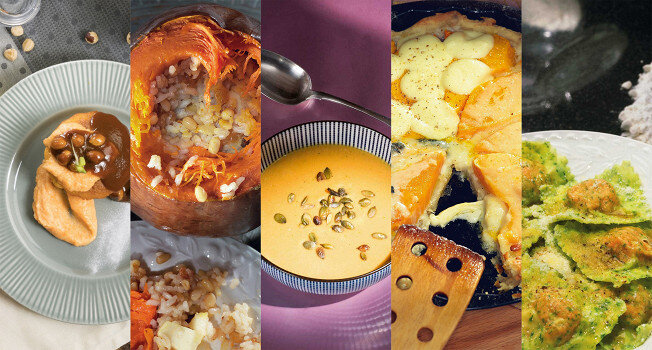 ОТ СУПОВ И ПИРОГОВ ДО РИЗОТТО Если вы вдруг отмечаете Хеллоуин фигурной резьбой по тыкве, а потом не знаете, куда тыкву утилизировать, — вам помогут некоторые из этих рецептов. Остальные — для тыкв целых и нетатуированных. И все — для тех, кто Хеллоуин не празднует, а просто хочет сделать что-то по-настоящему вкусное с хорошим сезонным овощем. Рис в тыкве, равиоли с тыквой, тыквенные чуду и маффины, крем-суп, тыквенно-сырный пирог и другие кулинарные приключения. А вот здесь можно узнать еще о трех десятках тыквенных идей, которыми с нами поделились хорошие шефы: конкретных рецептов они почти не рассказывают, зато их рассказы имеют куда большее значение — вдохновляющее. Простейший тыквенный суп, в котором в качестве жидкой составляющей выступает куриный бульон. Готовится быстро, видеорецепт прилагается. Рецепт в некотором смысле ювелирный, понадобятся машинка для приготовления пасты и кондитерский мешок. Нарядный пирог, в котором яркий цвет тыквы сглаживается четырьмя вида