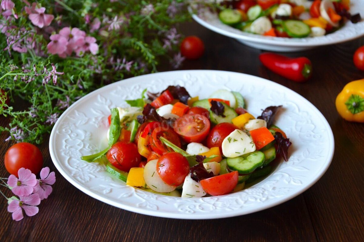 Ингредиенты: Приготовление: 1. Листья зеленого салата помыть и высушить бумажным или обычным полотенцем. Отломить твердые ножки салата и порвать его руками на небольшие кусочки, чтобы удобно было брать вилкой. Выложить их на тарелку. 2. Помидоры нарезать небольшими кусочками. Выложить на листья салата. 3. Моцареллу порезать кубиками и выложить их на помидоры. 4. Затем выложить зеленые оливки. 5. Кедровые орехи слегка поджарить на сухой сковороде и посыпать ими салат. 6. Приправить салат солью по вкусу и полить оливковым или подсолнечным маслом. Перемешивать салат не стоит. Приятного аппетита! Хотите больше подобных рецептов - подписывайтесь на канал, ставьте лайки. А я буду стараться выкладывать для вас больше вкусных рецептов. Спасибо!