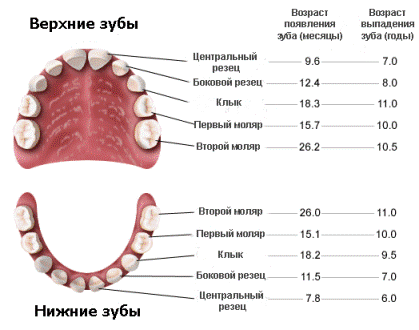 Их также нужно лечить и сохранить до того момента, когда на их месте появятся постоянные зубы. Когда же придет время временному зубу выпадать, его корешок рассосется, и его коронка или выпадает сама, или быстро и безболезненно удаляется доктором. Постоянный прикус начинает появляться с 5—6 лет до 12—15, обычно за это время выходит весть зубной ряд, хотя у некоторых зубы мудрости прорезаются только после 30, а у некоторых их нет вовсе.