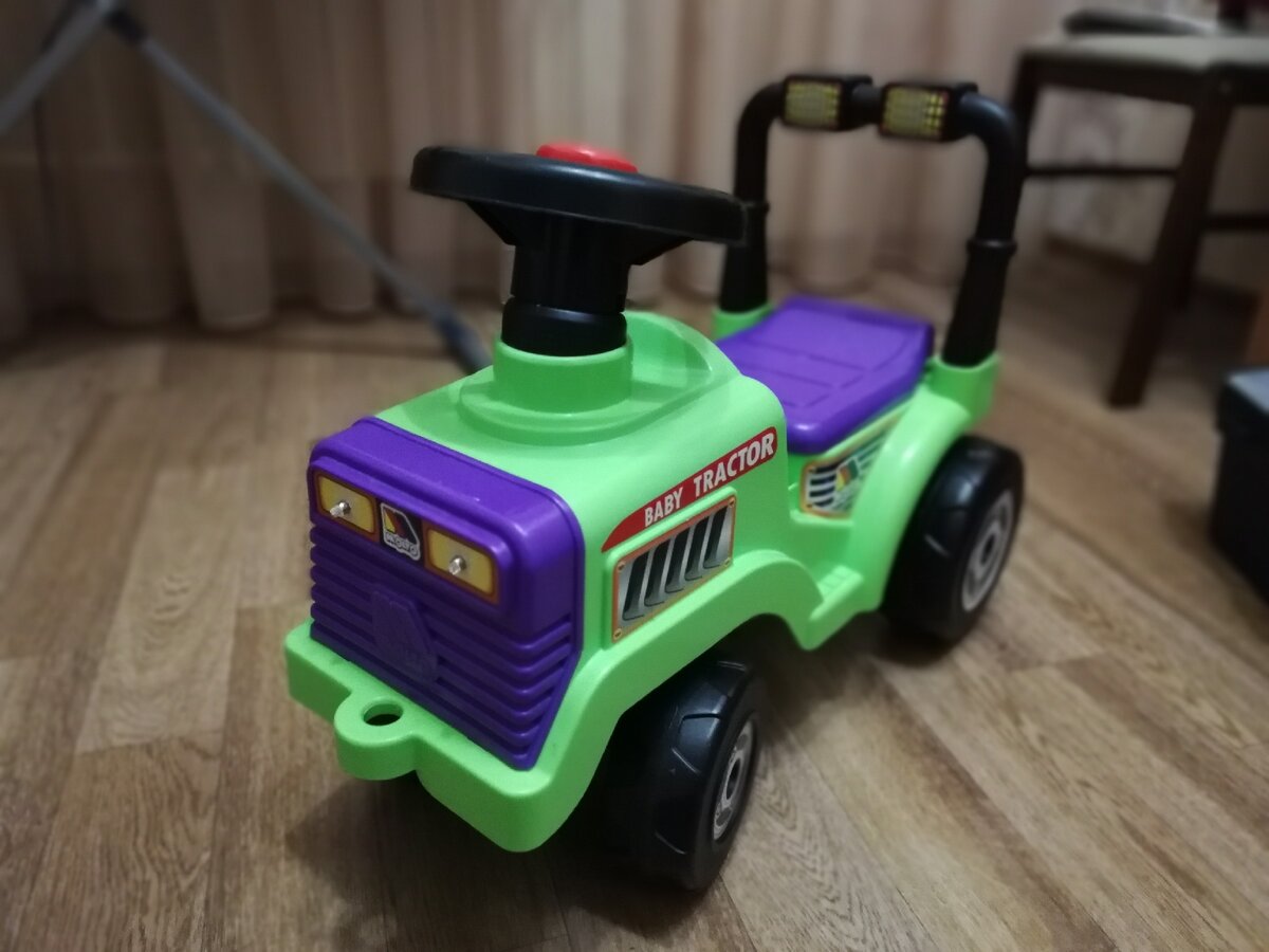 Есть у сына вот такая игрушечная машинка, но она была без света, чтобы было интереснее решил поставить два диода, теперь она светит ярко, сын в восторге. Для этого мне понадобился маленький выключатель, два диода (на самом деле больше, парочку я сжёг), два провода, батарейка крона и шляпка с проводами на неё. Передняя часть машинки съёмная, поэтому делать было несложно, снял сьемную часть, сделал 4 отверстия и закрепил крону хомутами. Затем 5ое отверстие для того чтобы увести провод на выключатель, плюс провел через него. Выключатель вставил в вырезанное для него отверстие, которое сделано ножом для линолеума (типа канцелярского, но прочнее). Диоды прикрепил к съёмной части на цоколи. Вот, что получилось :