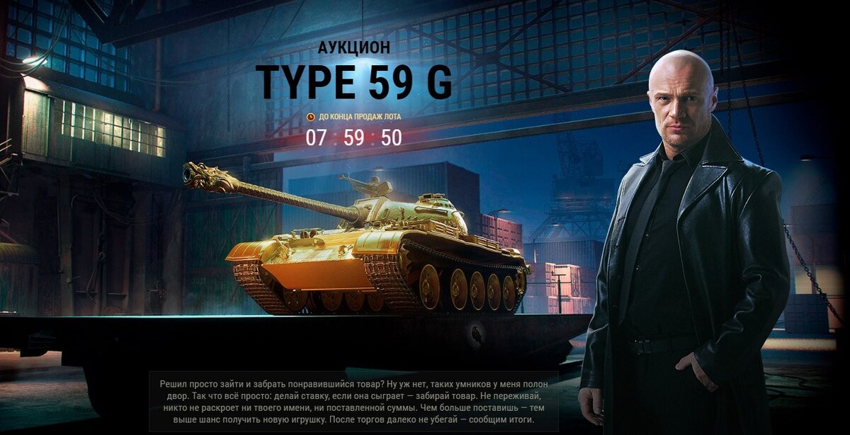 Альбер Камю Информация по лоту Данный так присутствовал на Чёрном Рынке в 2019 году. Тогда он помог Wargaming поднять ажиотаж возле игрового события т.к Type 59 G подорвался впервые в нашем регионе. Всего было продано 1 000 штук за 25 000 единиц золота. Красота, да и только Самой отличительной особенностью является уникальный внешний вид. Он действительно заслуживает внимание. При появлении танка в бою, абсолютно каждый игрок обращает на него внимание, независимо от времени проведенном в игре. Впервые Type 59 G появился на Китайских серверах. Помимо внешнего вида, для своего региона восточные соседи добавили коэффициент x2 к опыту за бой. И за него просили 120 000 рублей, баснословная сумма денег для нашей игры, но