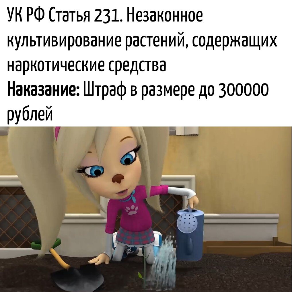 Вы не задумывались что некоторые действие персонажей не приводит их к нарушение законов ? Роза выращивает запрещенные растения Стар Баттерфляй постоянно бьет беззащитных животных Рыбачит в любом место безнаказанно Избиение Устраивают митинги и протесты против жителей своего города , не умею разрешения для проведения таких мероприятий