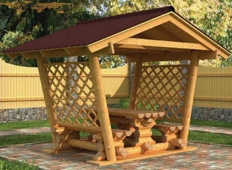 Беседка бывает большой, средней и маленькой. И раз уж дачник сделал выбор в пользу последней – значит, у него на это есть масса причин. Актуальность проекта Даже конструкцию площадью 4 м². можно назвать укрытием при условии, что она имеет несущие элементы и крышу. А если занести внутрь такой конструкции мебель (стол и сидения), то она по умолчанию превращается в беседку. И пусть беседка получается небольшой, ее все равно часто возводят дачники на своих участках. Возводят, руководствуясь следующими моментами: Чаще всего малые беседки открыты, и поэтому пригодны только для летнего отдыха. Однако это не делает их непригодными для остекления и обшивки. В конце концов даже конструкцию площадью 4 кв.м. можно сделать зимней за счет камина, окон и двойной обшивки. Если тематическая беседка возведена, а на ее остекление не хватает сил, средств или времени, то традиционные стеклопакеты с рамами можно заменить т.н. мягкими окнами, которые имеют вид винилового полотна, окантованного мембраной. Та