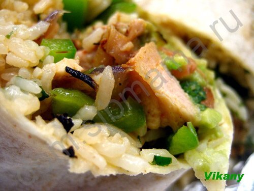 Буррито (burrito) это мексиканское блюдо - пшеничная лепешка (тортилья), в которую завернуто мясо, тушеная фасоль, рис, помидоры, авокадо, кукуруза. Туда же можно добавить салатные листья, сметану, острый соус. Фасоль я не очень люблю, у меня буррито без фасоли - не знаю буррито это или нет, мексиканцы меня, наверное, за такой буррито фасолью закидают :) Вместо фасоли у меня зеленый сладкий перец. Очень вкусно и сытно. Напишу рецепт и свои изменения.