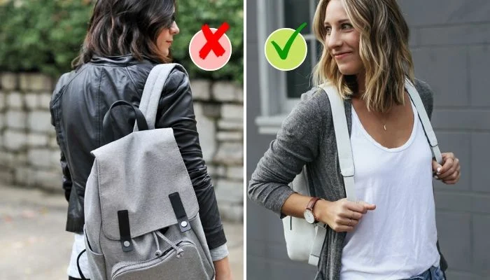 Современная мода предоставляет нам полную свободу выбора. Хочешь носить вместительный рюкзак вместо маленькой сумки? Делай это! Обожаешь рубашки? Пожалуйста, ходи в них хоть каждый день! Ах, если бы всё было так просто… Вы удивитесь, но многие вещи женщины носят неправильно. 1. Рюкзак Рюкзаки носят не только туристы и любители активного отдыха, но и среднестатистические жительницы города, например, мамы, женщины элегантного возраста, студентки и те, кто после работы отправляется в тренажерный зал. Многие из них делают это неправильно, что впоследствии может привести к серьезным проблемам со здоровьем. Откажитесь от ношения рюкзака на одном плече. Вес неравномерно распределяется по спине, и позвоночник понемногу начинает искривляться. То же самое касается ношения рюкзака на вытянутых лямках. За это ваша поясница точно не скажет вам спасибо. Отрегулируйте шлейки так, чтобы рюкзак не болтался на спине, а плотно к ней прилегал, тогда со здоровьем всё будет в порядке. 2. Рубашка В