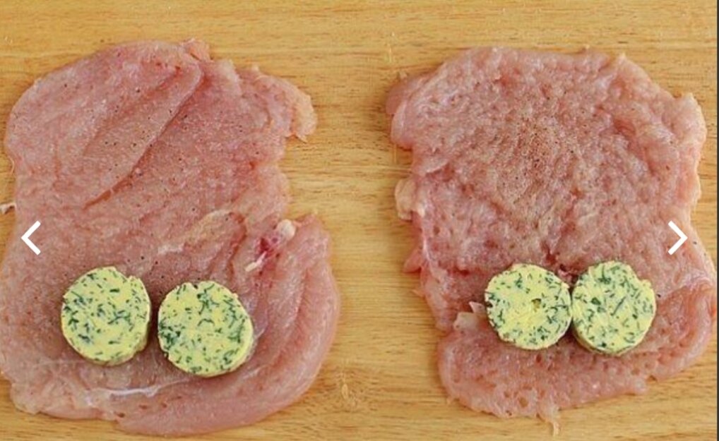 - На край филе выложить кусочки подмороженного сливочного масла.