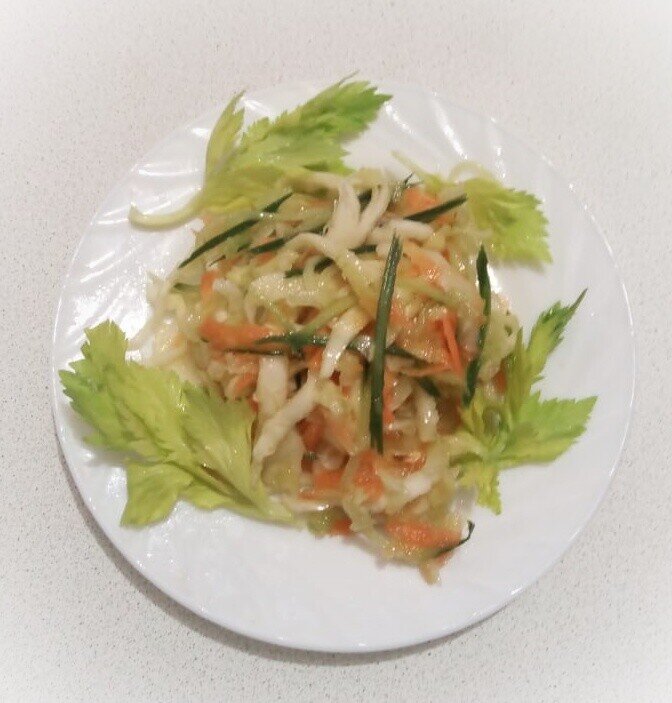 Предлагаю овощной салат. Очень легкий в приготовлении, очень полезный и необыкновенно вкусный. Особенно тогда, когда нужно приготовить очень быстро и гости уже на пороге. Ничего отваривать не нужно, просто нашинковать и заправить вкуснейшей заправкой. ПОНАДОБЯТСЯ ПРОДУКТЫ: ПРИГОТОВЛЕНИЕ: Вот и готов наш салат! Очень вкусный, легкий и полезный. Приготовьте обязательно, вам понравится. В этом салате сохраняются все витамины. Это блюдо просто незаменимо, особенно сейчас после долгой зимы. Попробуйте!!!. ПРИЯТНОГО АППЕТИТА!!!